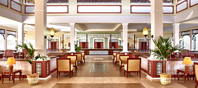 .El hotel cuenta con dos secciones, Azul y Paraíso, cuyo diseño se ha inspirado en las ciudades de Santiago de Cuba y Trinidad, respectivamente, recreando los principales escenarios y tradiciones y combinando elementos coloniales y contemporaneos en su arquitectura y decoración.